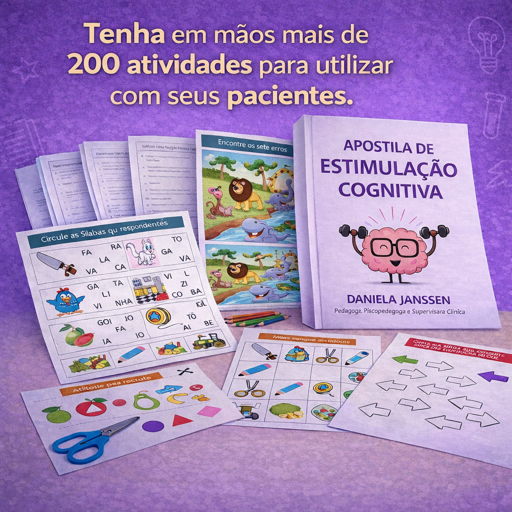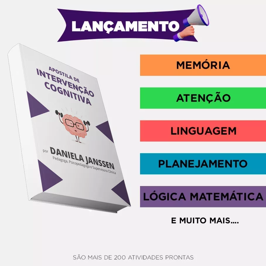 Você está precisando de uma ajuda nas suas intervenções Psicopedagógicas e Neuropsicopedagógicas? Receba mais de 200 atividades prontas para estimulação cognitiva dos seus pacientes.